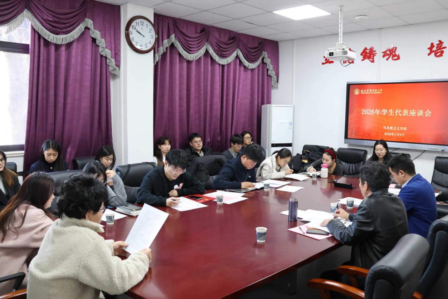 为精准对接学生需求,更好谋划学院发展,1月9日下午,我院在214会议室召开2026年学生代表座谈会,院党委副书记兼副院长王家武老师主持会议,学院团总支书记赵昂老师以及各年级学生代表参加会议。