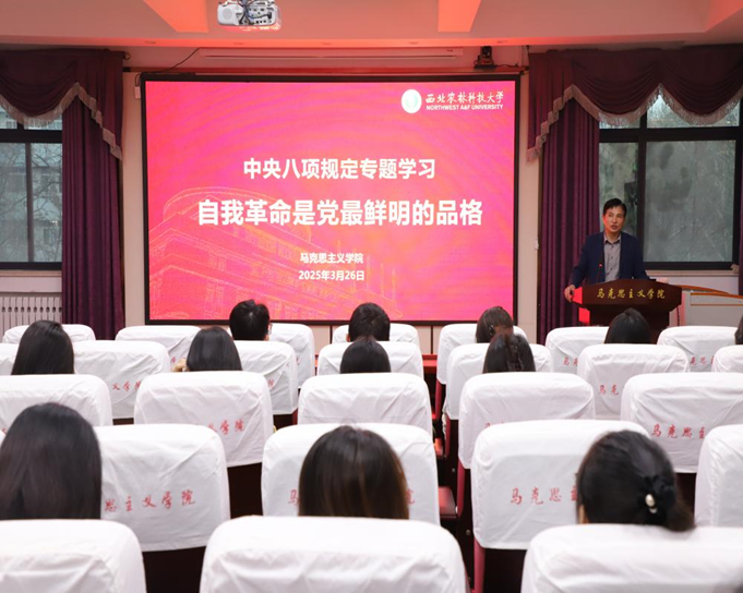 为深入学习宣传贯彻党的二十大精神,扎实推进中央八项规定精神落地见效,3月26日晚上,马克思主义学院在学院408报告厅举行深入贯彻中央八项规定精神学习教育专题党课,学院中国近现代史纲要系教师宋文杰副教授应邀主讲。