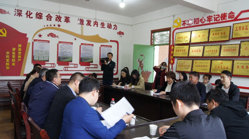 随后,在雷英贤副局长、王益锋副局长和 “研究生助力团”部分成员的带领下,研究团队先后在新池镇南沟社区、城关街道办白灵村、坊镇乾落社区和金裕镇沟北村召开座谈会,并实地考察富源现代农业园区、白灵村泰丰农业园区、乾落社区幸福院和沟北村产业服务中心, 详细了解村情现状、农村产业、基础设施、村容村貌、生态环境、乡村文明等方面的情况。南沟社区采取“集体经济合作社+专业合作社+股份经营”模式,以产业巩固脱贫成果,推动乡村振兴。白灵村坚持“党建引领,产业推动、文化铸魂”,推进民主法治建设示范村的建设,设置环境卫生长效机制,提升乡风文明。乾落社区坚持产业融合发展的思路,推行“一六一振兴规划”,栽培黑皮鸡枞菌等特色品种,并探索出了“幸福食堂”的新模式。沟北村以高效的产权制度改革为前提,创新了集体经济经营模式。