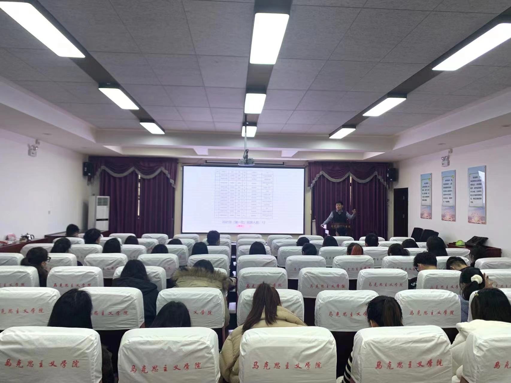 “提前做功课,认真讲好课。对标大练兵,深得评委心。”这是马克思主义学院就业指导报告上主讲人给同学们应聘思想课教师的精辟建议。11月18日上午,一场关于职业院校思政课教师需求形势及应聘技巧的就业指导报告在马克思主义学院举行,杨凌职业技术学院马克思主义学院主持工作的副院长张伟副教授应邀担任主讲。