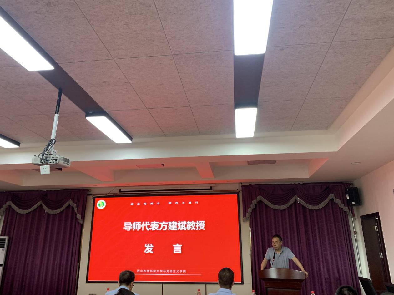 导师代表方建斌教授用“小荷才露尖尖角,早有蜻蜓立上头”“纸上得来终觉浅,绝知此事要躬行”“问渠哪得清如许,为有源头活水来”等名诗句寄语新生,希望同学们把马克思主义学院作为人生的一个重要“驿站”,作为个人成长道路的关键“加油站”,利用好三年时间多读书、多实践、多思考,学习研究中充分彰显西农特色、杨凌特色、陕西特色。