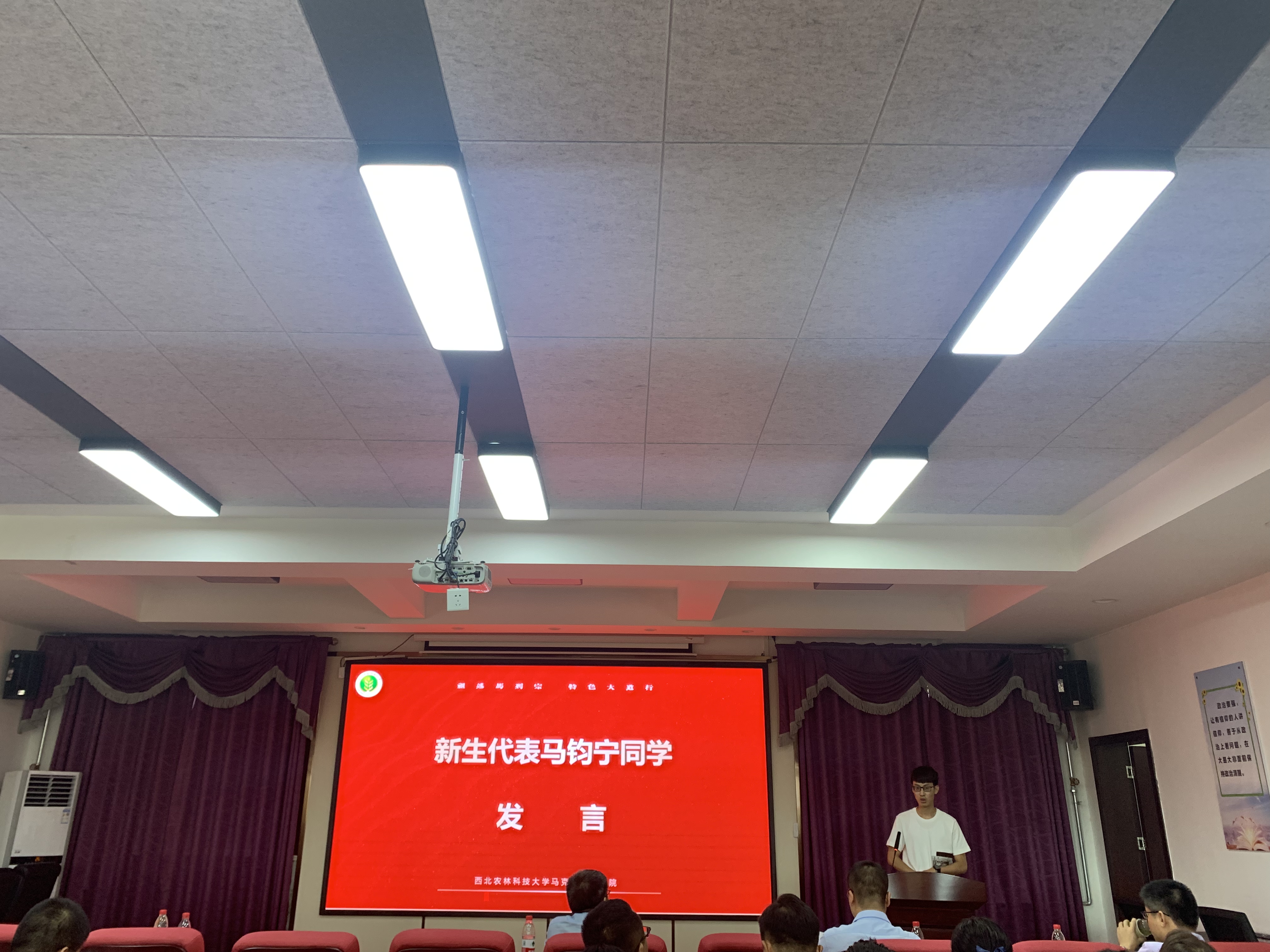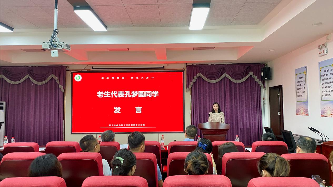 新生代表马钧宁对学院领导老师和学长学姐的热情接待表示感谢,对来到美丽的西农学习表示自豪。倡议2021级新生要“明确目标,找准定位;博采众长,厚积薄发;修身立德,志存高远”,从现在开始,科学规划研究生生活,做一个有抱负的“西农人”,做一个有信仰的“马院人”,做一个“不负时代、不负韶华”的新时代接班人。