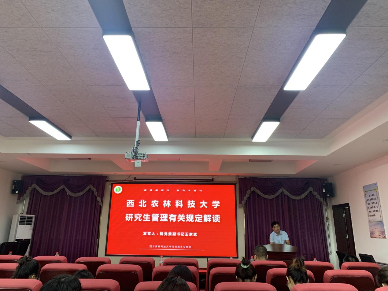 开学典礼后,学院集中开展了新生入学教育,副院长杨鹏教授、副院长高小升副教授、院党委副书记王家武围绕马克思主义理论专业基本情况和培养方案、科学道德与学术规范相关政策、研究生管理相关规定等做了介绍和解读。