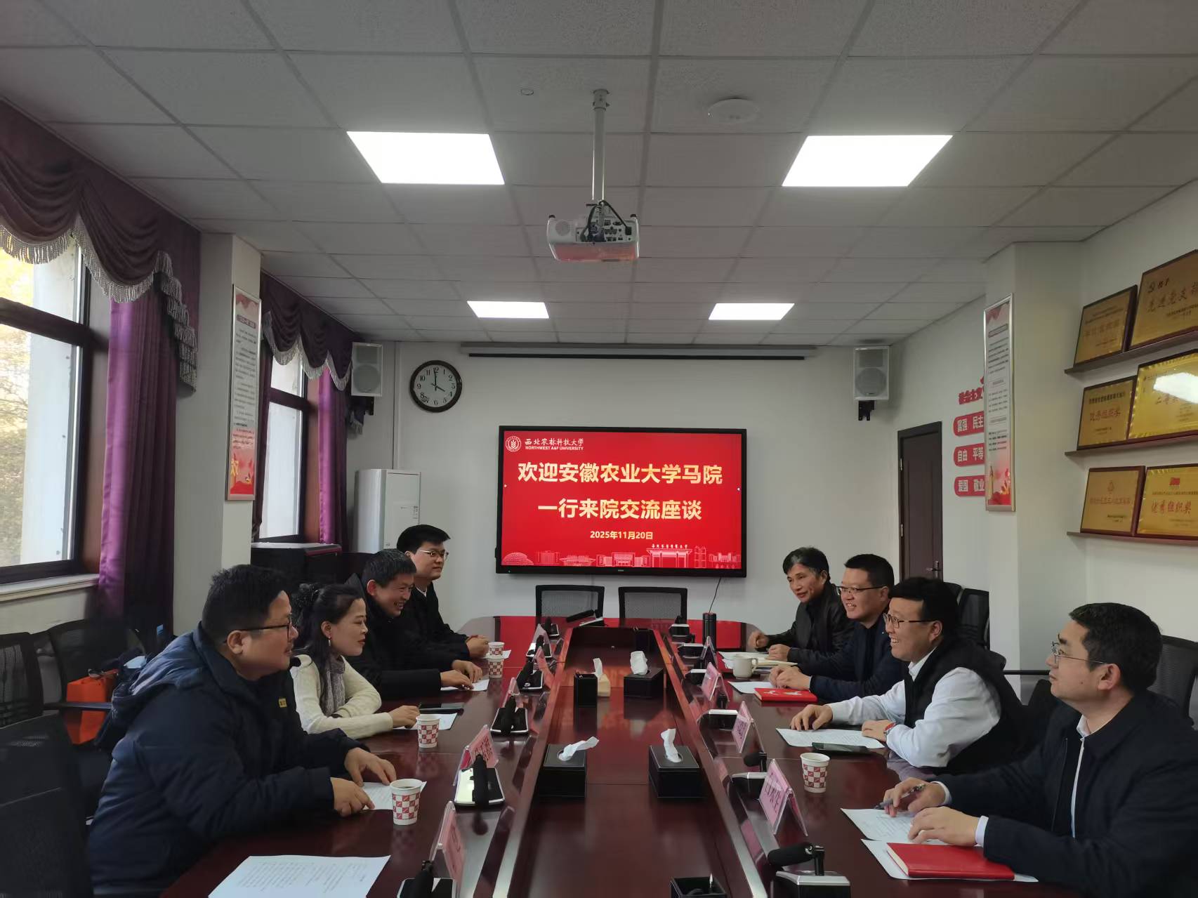 会上,双方首先分别介绍了各自学院的发展概况、师资队伍建设及办学特色。随后,副院长白永生详细分享了学院在马克思主义理论学科建设方面的优秀成果与先进经验。安徽农业大学马克思主义学院院长苏洁聚焦思政课建设,深入介绍了以农业为核心的特色课程建设情况及实践心得。在座谈交流环节,双方围绕马克思主义理论学科建设的重点难点、农业特色思政课程的创新路径,以及“1+5”农业科技创新联盟合作事宜展开热烈讨论。与会人员结合各自办学实践积极建言献策,交流氛围浓厚,达成了多项共识。会后参加了爱国主义教育基地三号教学楼。