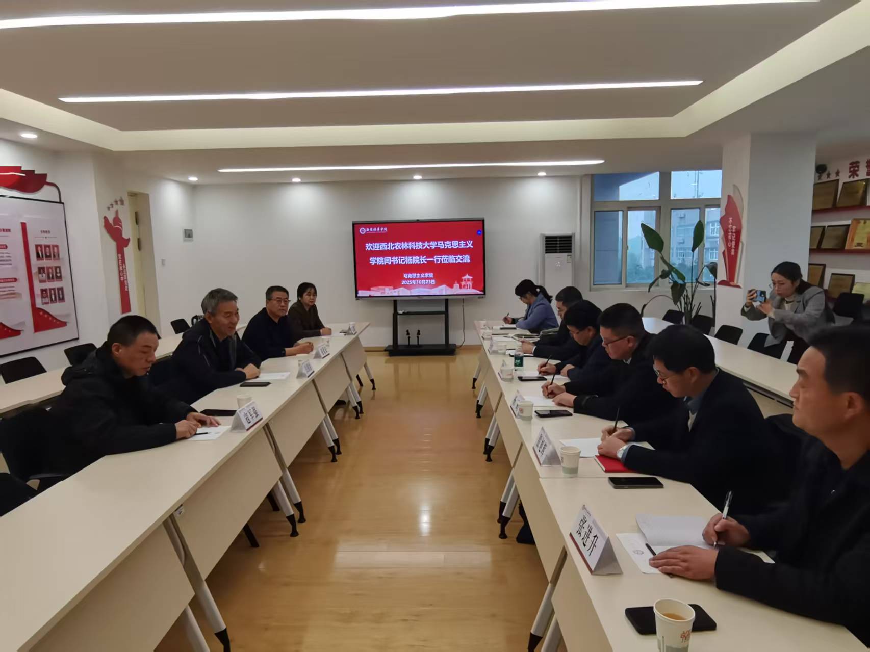 10月23日下午16时,学院党委书记闫德忠、院长杨鹏、副院长白永生、殷旭辉等一行7人,赴西安培华学院马克思主义学院开展调研座谈。西安培华学院马院院长闫团结、院党支部书记寇军强、副院长赵延安、副院长霍艾湘热情接待学院一行,双方围绕大思政课建设、思政课教学改革等核心议题展开深入交流,为推动两校思政教育高质量发展凝聚共识。