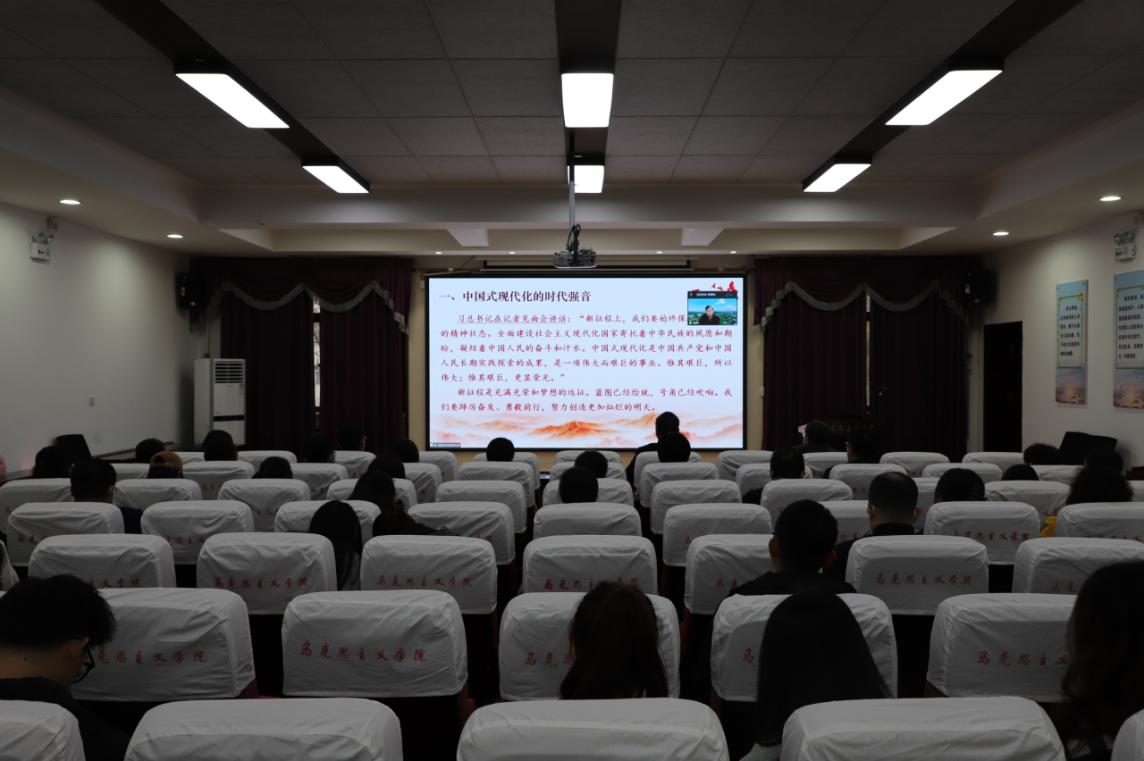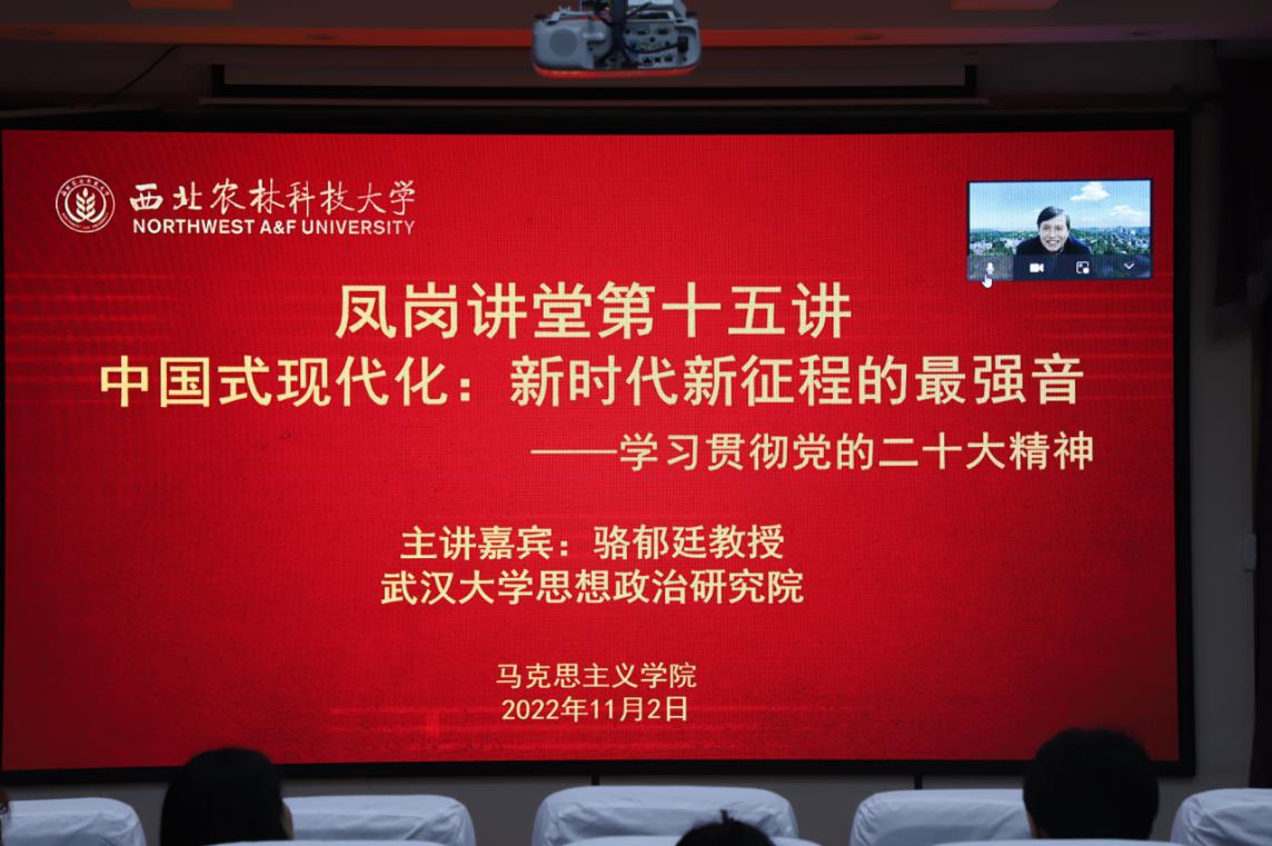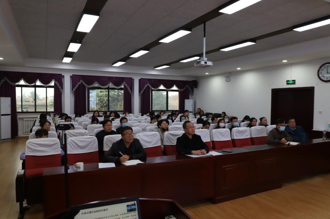 11月2日下午,中央马克思主义理论研究与建设工程首席专家、国务院马克思主义理论学科召集人、教育部马克思主义理论类教学指导委员会副主任、武汉大学思想政治教育研究院院长骆郁廷教授应邀做客我院第十五期“凤岗讲堂”,为学院师生进行了题为《中国式现代化:新时代新征程的最强音——学习贯彻党的二十大精神》的专题报告,报告会由学院党委书记、院长赵延安教授主持,全院师生参加此次会议。