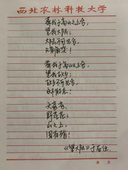 何晓东同学给学校创始人于右任先生写信并读写名诗《望大陆》