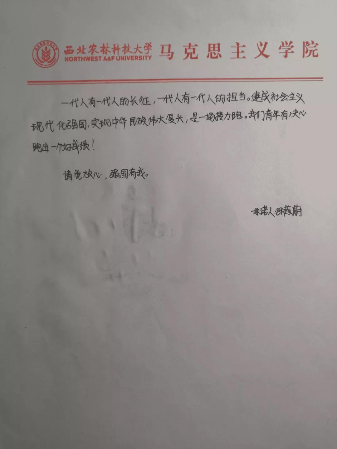 张葭蔚、黄楚娟的爱国承诺书