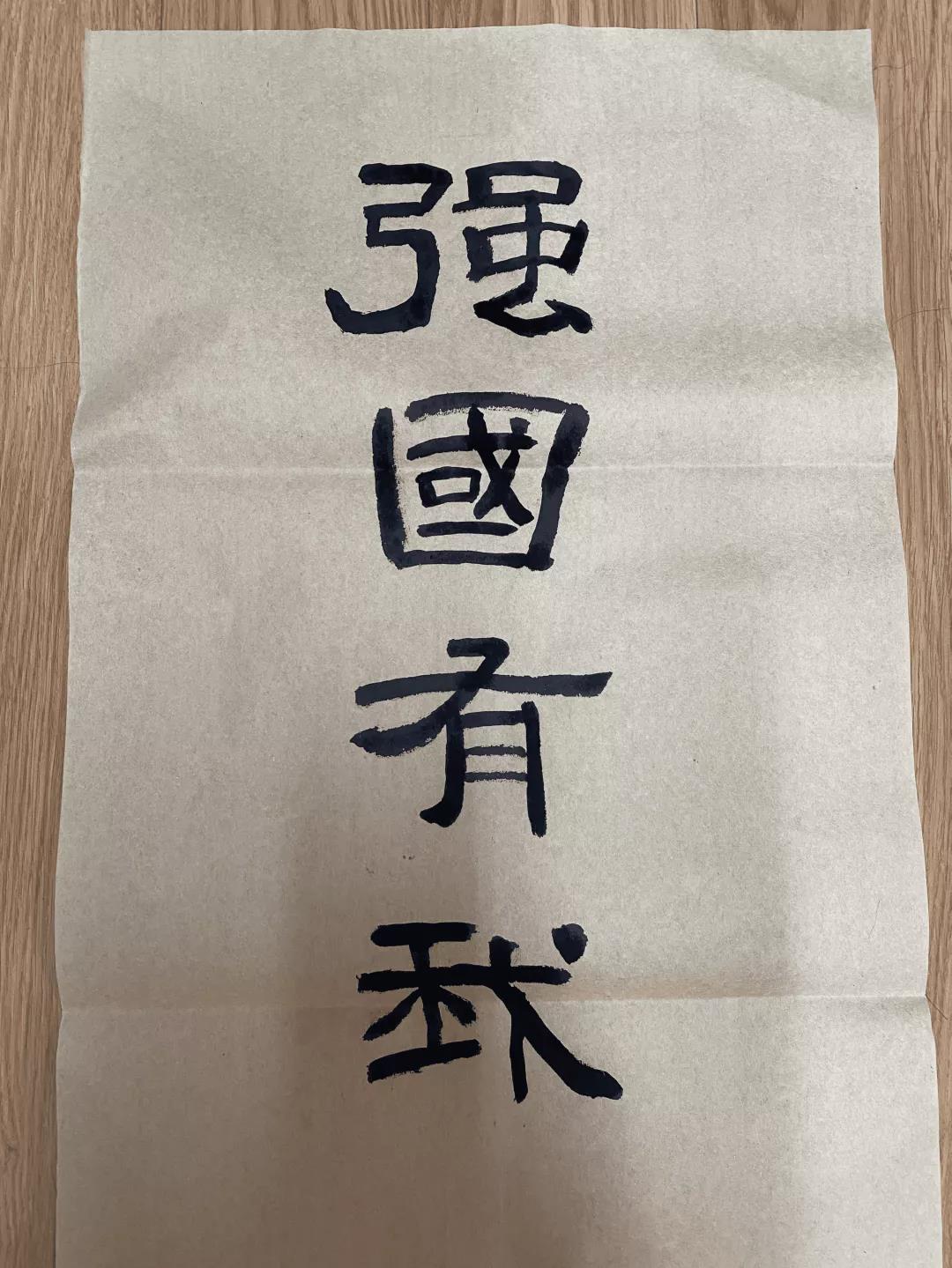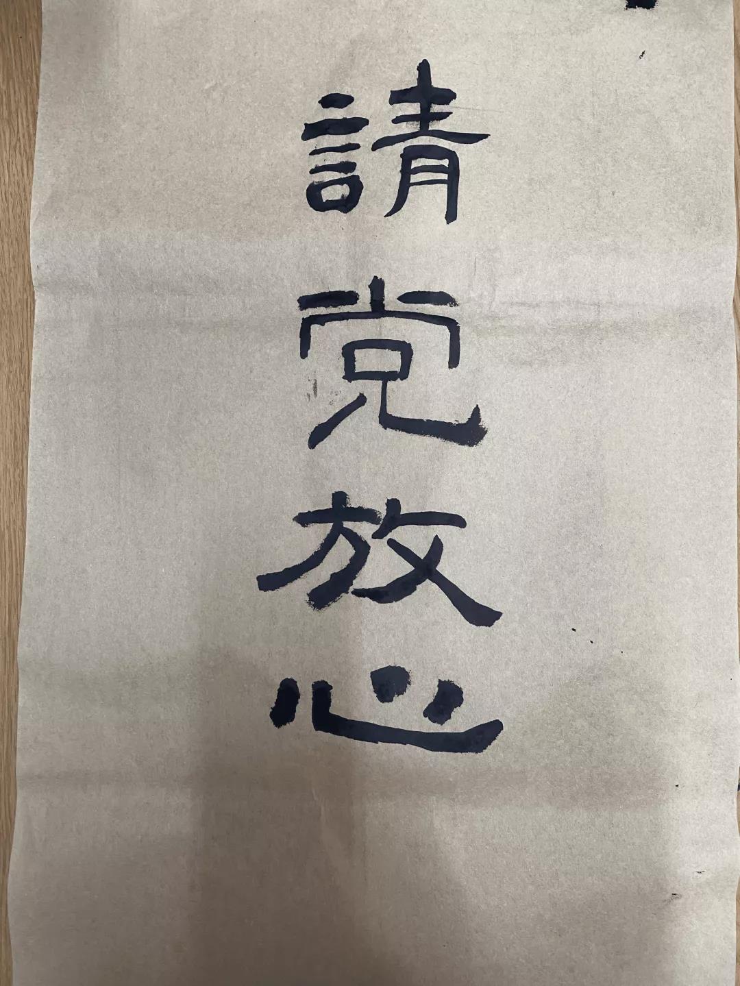 周映柯同学的软笔作品《请党放心,强国有我》